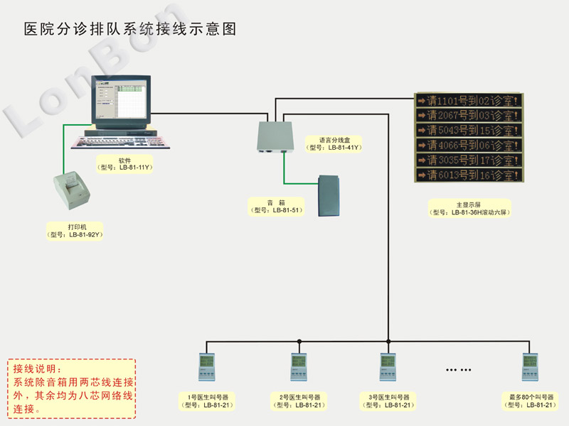 ● 安装简捷,只需一条两芯线与语言分线盒(LB-81-41Y)相连接。