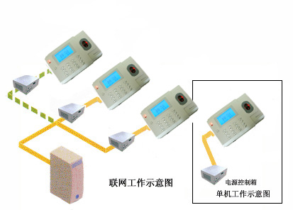 * 指纹考勤机**RS232、RS485、TCP/IP方式与计算机通讯,可多台联网使用;适用于人数在1500人以内的企业。